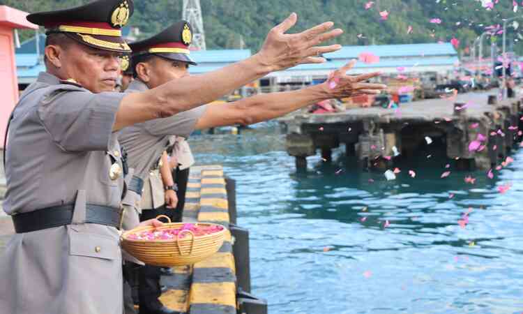 WARTAKEPRI.co.id, ANAMBAS –Polres Kepulauan Anambas Melaksanakan Kegiatan upacara Tabur Bunga di Laut dalam rangka memperingati Hari Bhayangkara Ke 77 tahun 2023 di Pelabuhan Pemda Kecamatan Siantan Kabupaten Kepulauan Anambas, Selasa (27/06/2023).
