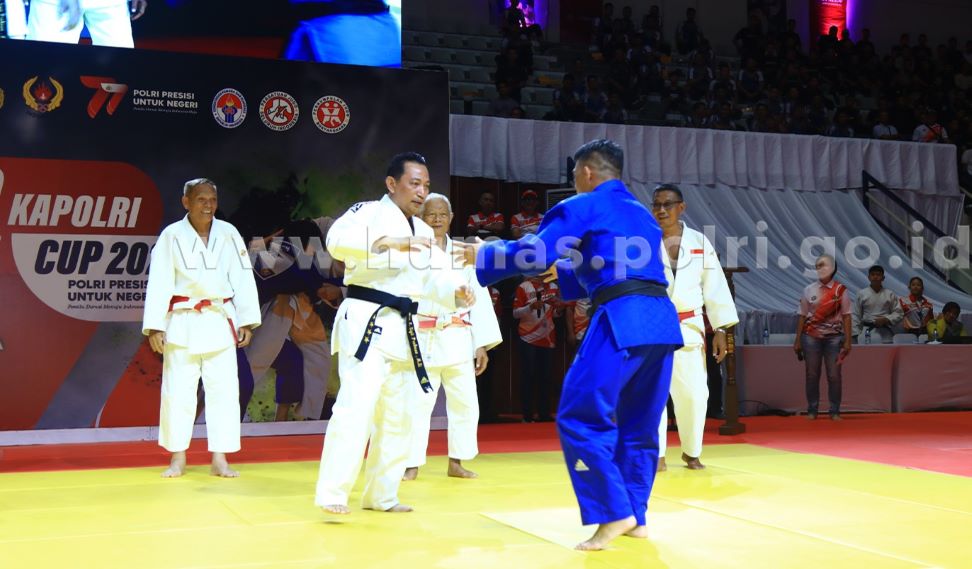 WARTAKEPRI.co.id, JAKARTA – Polri menggelar Judo Kapolri Cup di Padepokan Pencak Silat Taman Mini Indonesia Indah (TMII), Jakarta Timur. Dalam momen tersebut, Kapolri Jenderal Listyo Sigit Prabowo ikut meramaikan dengan bermain langsung Judo, Minggu (9/7/2023).
