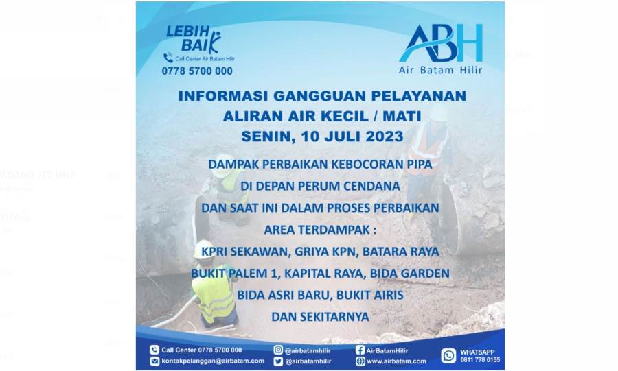 • Call Center Air Batam Hilir (0778) 5700 000