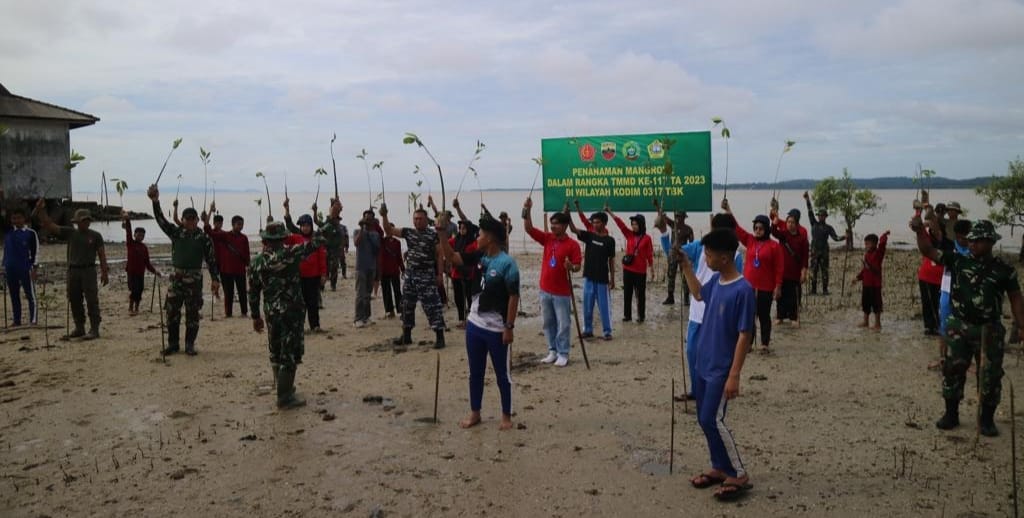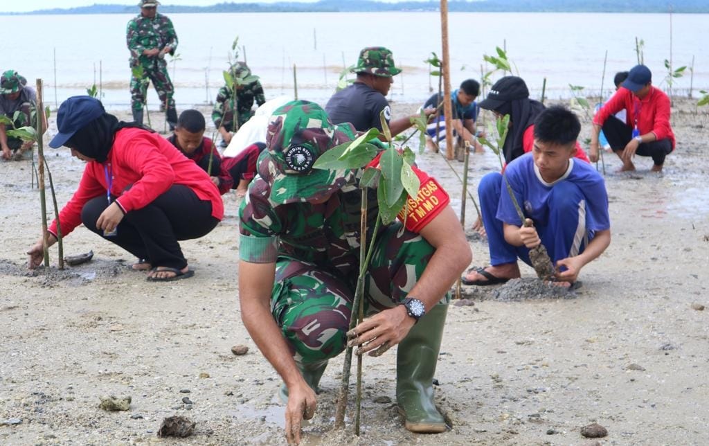 “Dengan dilaksanakannya penanaman bibit mangrove, tentunya menjadi sinyal bahwa TNI hadir tidak hanya sebagai pertahanan negara, akan tepat hadir untuk wilayah pesisir dan ketahanan pulau-pulau kecil,” beber Hendrik.