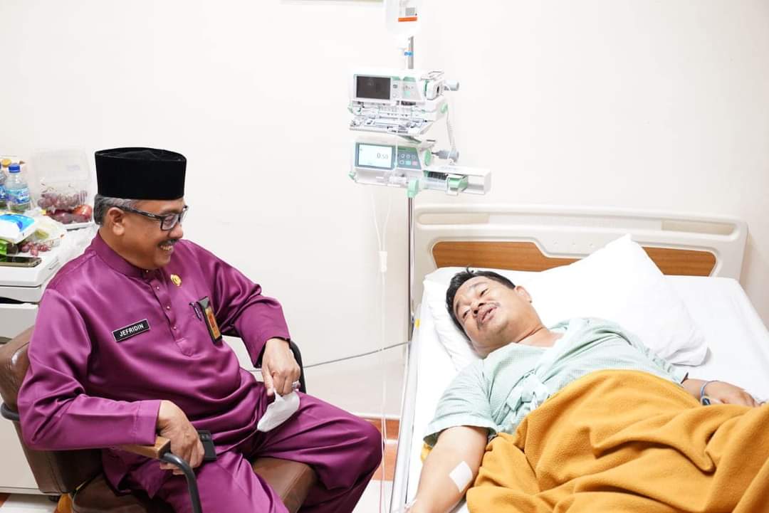 Meski terbaring lemas dengan infus di tangan, tidak menghilangkan senyuman di wajah Raja Amar kala menerima kedatangan Jefridin. Setelah memberi motivasi dan menyemangati Amar, Jefridin bersama seluruh yang ada di ruangan itu mendoakan kesembuhan untuk Amar.