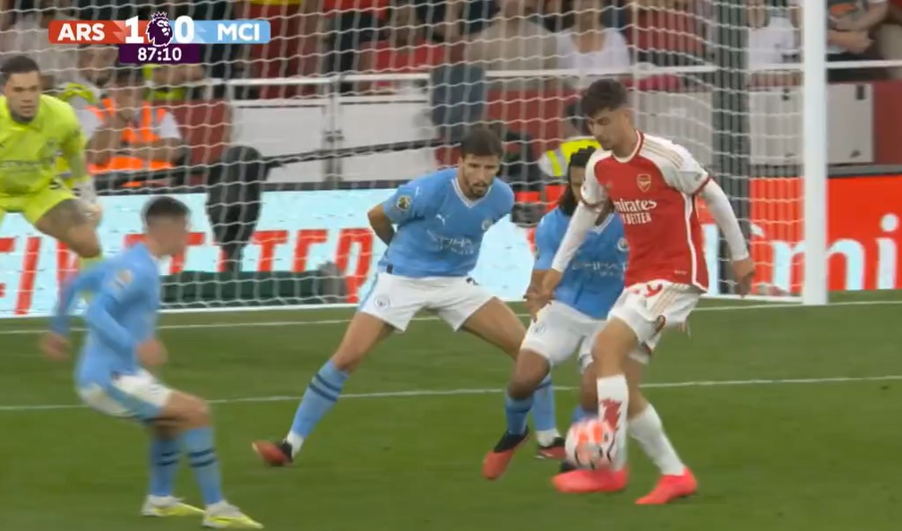 Walhasil kiper Man City, Ederson yang telah melompat harus mati langkah setelah bola mengalir deras ke arah sebaliknya. Hingga akhir pertandingan Man City tidak dapat banyak berbuat banyak, gawang David Raya aman hingga waktu usai.