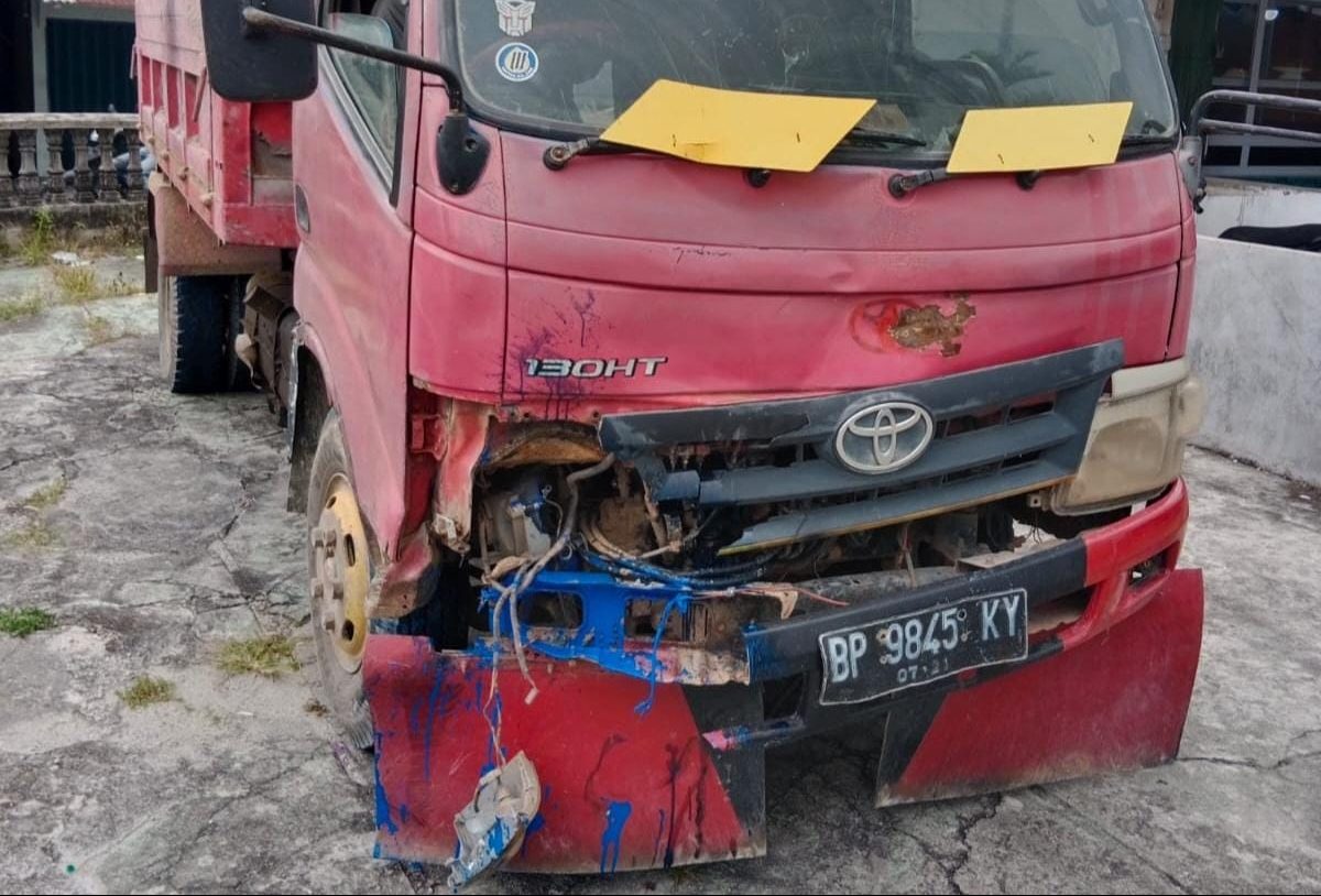 Kecelakaan tersebut melibatkan satu unit mobil Toyota dump truck dengan nomor polisi BP 9845 KY dan satu unit sepeda motor Honda C100 yang dikendarai oleh korban.