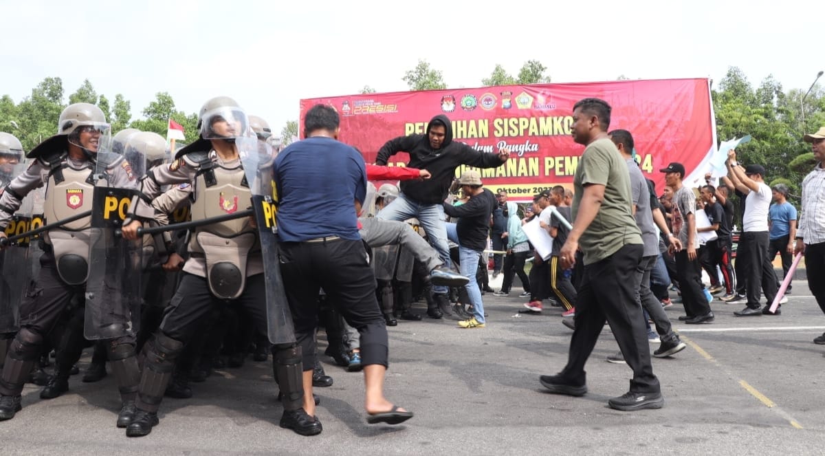 “Konsep simulasi pada situasi rusuh dan genting, dimana massa menuntut adanya penghitungan ulang surat suara, karena diduga terdapat kecurangan dan menolak hasil keputusan KPU dalam Pemilu, sehingga massa melakukan aksi protes yang berujung bentrok dengan petugas kepolisian,” paparnya.