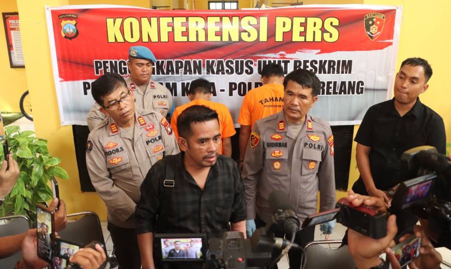 BATAM – Kapolsek Batam Kota AKP Sudirman, SH menggelar Konferensi Pers Ungkap 2 Pelaku Pencurian dengan Kekerasan (Jambret) yang di dampingi oleh Kasihumas Polresta Barelang AKP Tigor Sidabariba, SH dan Kanit Reskrim Iptu Fajar Bittikaka, STrk bertempat di Mapolsek Batam Kota. Selasa (17/10/2023)