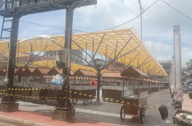 TANJUNGPINANG – Proyek penataan kawasan Kuliner Akau Potong Lembu Tanjungpinang hampir rampung. Terlihat puluhan gerobak kuliner telah siap digunakan dan tersusun rapi.