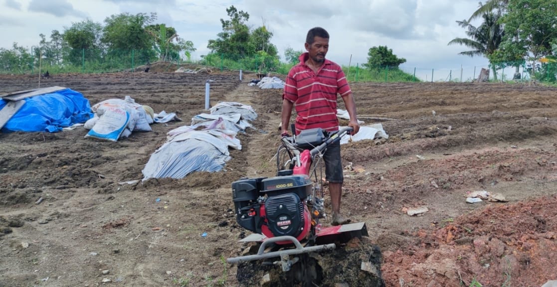 “Sekarang kami sedang mengolah lahan untuk ditanami cabai. Bibit cabai yang disemai sudah cukup umur untuk dipindahkan ke lahan atau bedeng yang sedang digarap,” ucapnya.