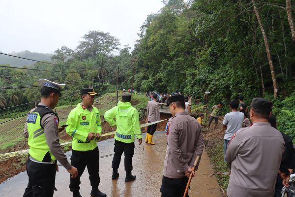 Kapolres menjelaskan bahwa longsor ini dipicu oleh hujan deras yang merusak struktur tanah di bawah badan jalan, menyebabkan jalan tersebut longsor.