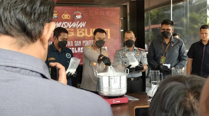 Pemusnahan sabu dilakukan dengan cara direbus dengan air mendidih.