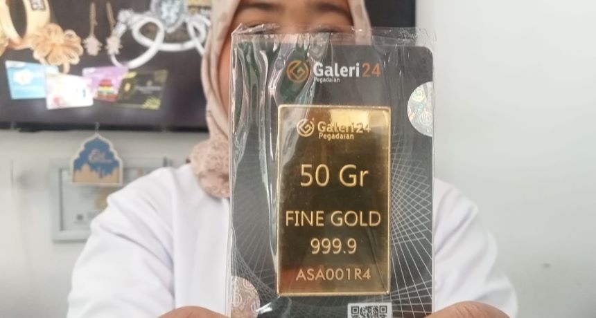 Emas Galeri 24 berat 1 gram dijual Rp 1.326.000, turun Rp 14.000. Berat 2 gram Rp 2.600.000, turun Rp 28.000. Berat 5 gram Rp 6.410.000 dan 10 gram Rp 12.730.000.