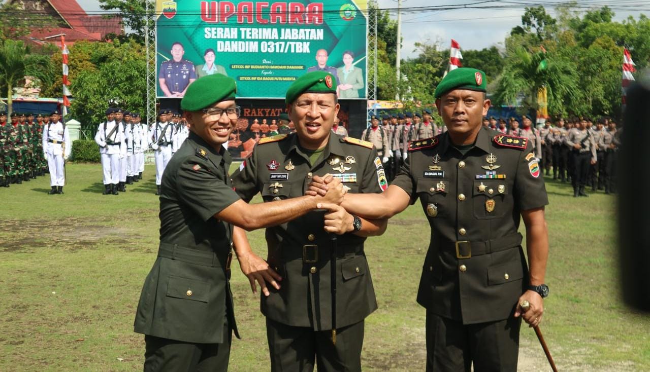 Upacara serah terima jabatan (Sertijab) Dandim 0317/TBK dari Letkol Inf Budianto Hamdani Damanik kepada Letkol Inf Ida Bagus Putu Mudita.