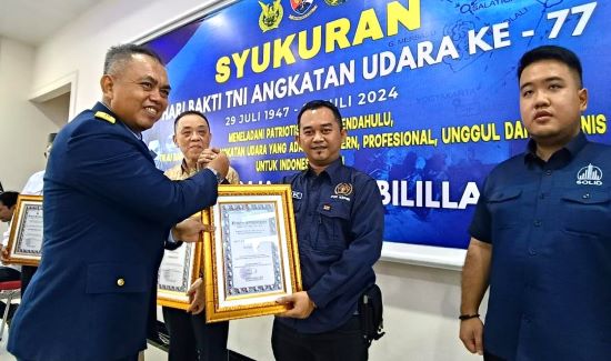 TANJUNGPINANG – Ketua Persatuan Wartawan Indonesia (PWI) Kepulauan Riau, Andi, menerima penghargaan dari Komandan Lanud Raja Haji Fisabilillah (RHF) Kota Tanjungpinang pada acara Syukuran Lanud RHF dalam rangka HUT ke-77 Hari Bakti TNI AU tahun 2024, Senin (29/07/2024).