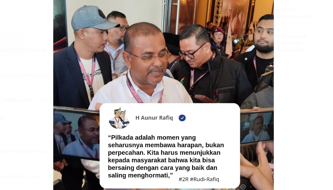 Rafiq memahami bahwa keberhasilan tidak hanya diukur dari suara yang diperoleh, tetapi juga dari cara mereka bertanding. Wakil H Muhammad Rudi itu percaya, setiap kata dan tindakan mereka bisa menjadi cermin bagi masyarakat.