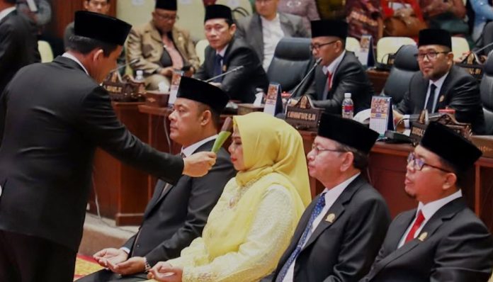 WARTAKEPRI.co.id, TANJUNGPINANG – Iman Sutiawan resmi dilantik menjadi Ketua DPRD Provinsi Kepri periode 2024-2029, Senin (07/10/2024) siang. Pelantikan dan pengucapan sumpah yang dipimpin langsung oleh Ketua Pengadilan Tinggi (PT) Provinsi Kepri, Dr. Erwin Mangatas Malau, SH, MH.