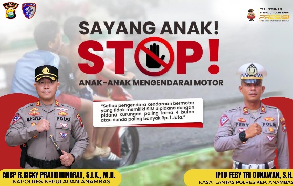 ANAMBAS – Ps. Kasat Lantas Polres Kepulauan Anambas, IPTU Feby Tri Gunawan, S.H., mengeluarkan himbauan tegas kepada para orang tua agar tidak memberikan motor kepada anak-anak yang masih di bawah umur, Sabtu (19/10/2024)
