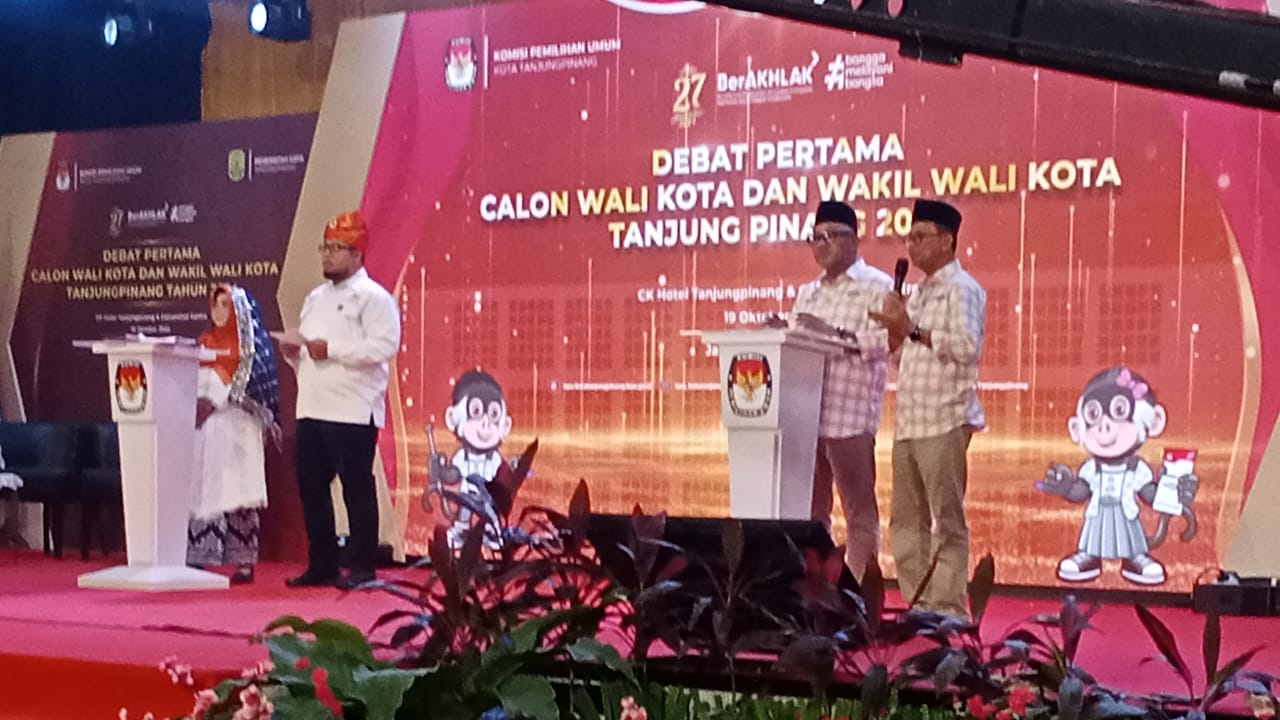 WARTAKEPRI.co.id, TANJUNGPINANG.co.id – Debat Pertama Calon Walikota dan Wakil Walikota Tanjungpinang Tahun 2024, bertempat di Hotel CK kilo meter 8 Kota Tanjungpinang Provinsi Kepulauan Riau pada Sabtu(19/10/2024)malam.