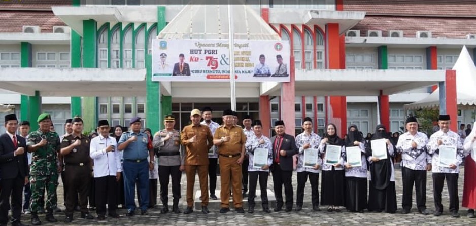 ANAMBAS – Pemkab Kepulauan Anambas Gelar Upacara Peringatan Hari Ulang Tahun PGRI Ke-79 dan Hari Guru Nasional Tahun 2024, kegiatan berlangsung Di Halaman Kantor Bupati Kepulauan Anambas, Senin (25/11/2024).