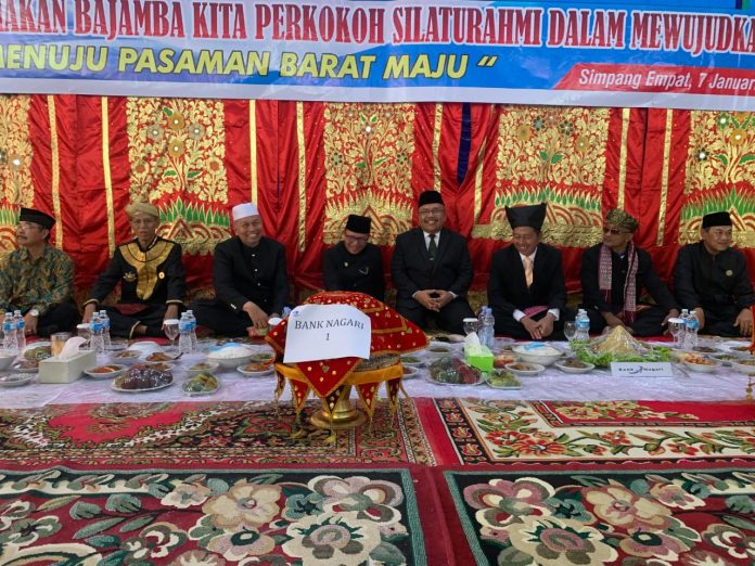 Pasbar–Setelah menghadiri Rapat Paripurna Istimewa Dewan Perwakilan Rakyat Daerah (DPRD) dalam rangka Peringatan Hari Jadi ke-21 Kabupaten Pasaman Barat Tahun 2025 di Kantor DPRD setempat pada Selasa (7/1), rombongan Pemerintah Daerah Pasaman Barat, Forkopimda dan tamu yang hadir lainnya melanjutkan agenda Tradisi Makan Bajamba di Balerong Pusako Anak Nagari Pasaman Barat.