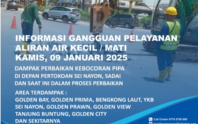Info Gangguan Air Dampak Perbaikan Kebocoran Pipa di Sei Nayon Bengkong