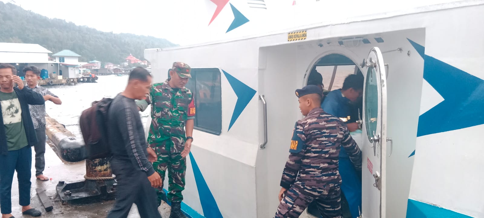 Ditengah hujan gerimis tidak menyurutkan salah seorang Babinsa dari Koramil 02/Tarempa Kodim 0318/Natuna yang selalu terlihat ramah dan senyum membantu para penumpang kapal fery VOC Batavia yang akan berangkat dari Pelabuhan Kelas II Tarempa pada hari Selasa (21/01/2025)