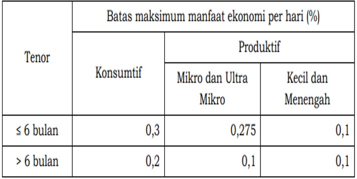 “Penetapan batas maksimum manfaat ekonomi (suku bunga) tersebut ditujukan demi memberikan pelindungan kepada masyarakat dari suku bunga tinggi sekaligus membedakan pinjaman online legal (Pindar) dengan yang ilegal (Pinjol),” kata Agusman.