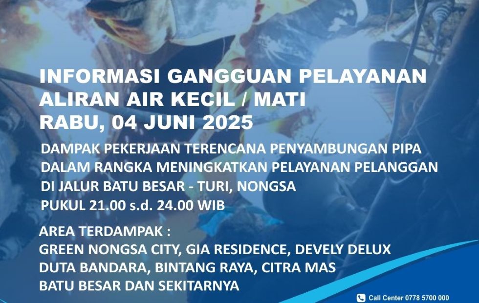 Area terdampak : Green Nongsa City, Gia Residence, Devely Delux, Duta Bandara, Bintang Raya, Citramas, Batu Besar dan sekitarnya.