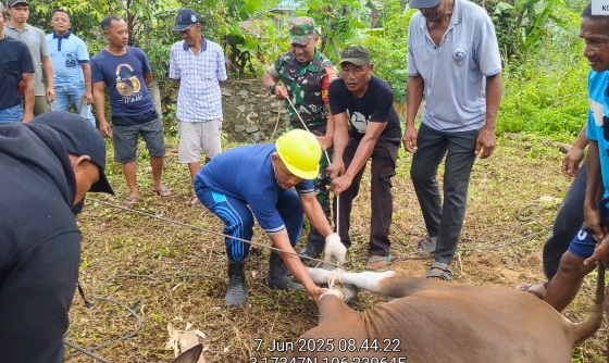 WARTAKEPRI.co.id ANAMBAS – Sertu Ganda Fitrianto, Anggota Koramil 02/Tarempa Kodim 0318/Natuna, melaksanakan komunikasi sosial (Komsos) membantu warga dalam penyembelihan hewan kurban di Desa Tarempa Selatan, Kecamatan Siantan, Kabupaten Kepulauan Anambas, Sabtu (07/06/2025)