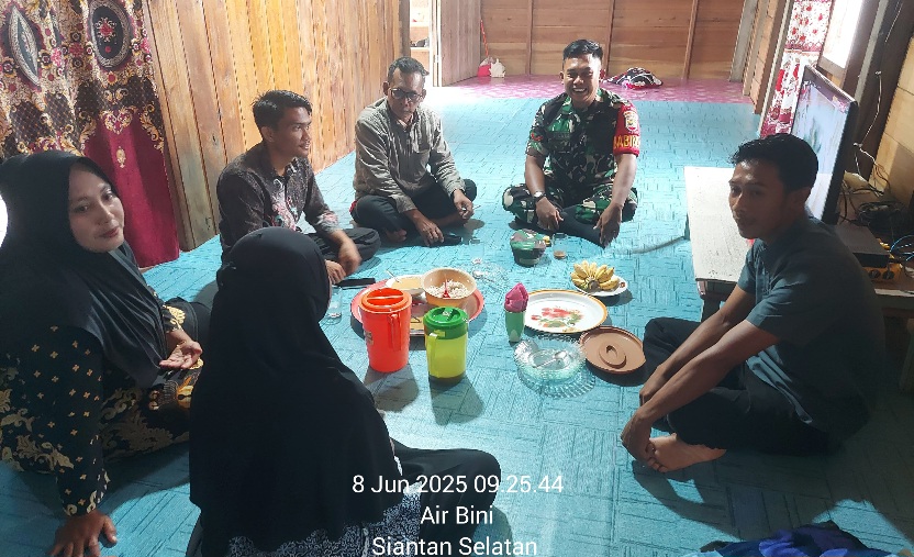WARTAKEPRI.co.id ANAMBAS – Masih dalam suasana Lebaran Idul Adha 10 Dzulhijjah 1446 H/2025 M, Kopda Indra Lesmana, anggota Koramil 02/Tarempa Kodim 0318/Natuna, mempererat tali silaturahmi dengan perangkat desa di kediaman Bapak Kadus I Desan di Desa Air Bini, Kecamatan Siantan Selatan, Kabupaten Kepulauan Anambas. 08/06/2025.