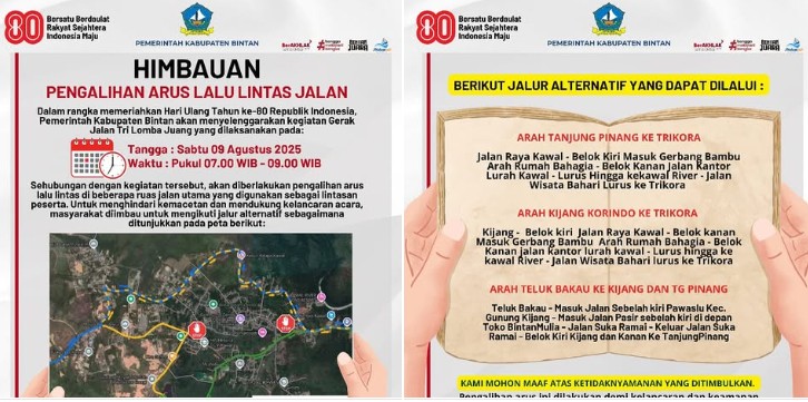 Pemerintah Kabupaten Bintan mengajak seluruh elemen masyarakat untuk berpartisipasi aktif dan turut menyemarakkan peringatan HUT RI ke-80 dengan semangat juang dan persatuan.