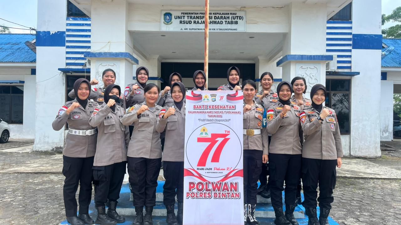 WARTAKEPRI.co.id, BINTAN – Dalam rangka menyambut HUT Polwan ke 77 tahun 2025, Polwan Polres Bintan melaksanakan Bakti Kesehatan, yakni donor darah yang dilaksanakan di Unit tranfusi darah Pawang Merah Indonesia (PMI) Provinsi Kepri, Jumat (29/8/2025).