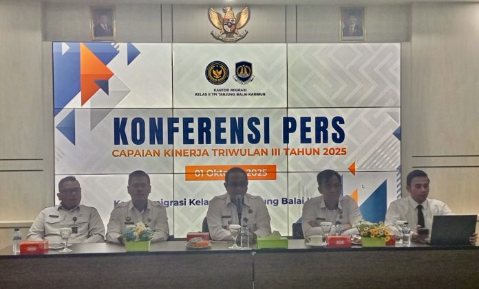 Hal tersebut diungkapkan oleh Kepala Kantor Imigrasi Kelas II TPI Tanjungbalai Karimun, Dwi Avandho Farid saat menggelar konferensi pers capaian kinerja triwulan III tahun 2025, Rabu, 1, Oktober 2025.