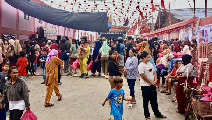 Ia berujar, acara digelar sejak pembukaan tadi malam, melalui hiburan seni budaya barongsai, makan buffet, pesta kembang api dan penampilan artis legendaris asal Taiwan serta hari ini pembagian paket sembako gratis.
