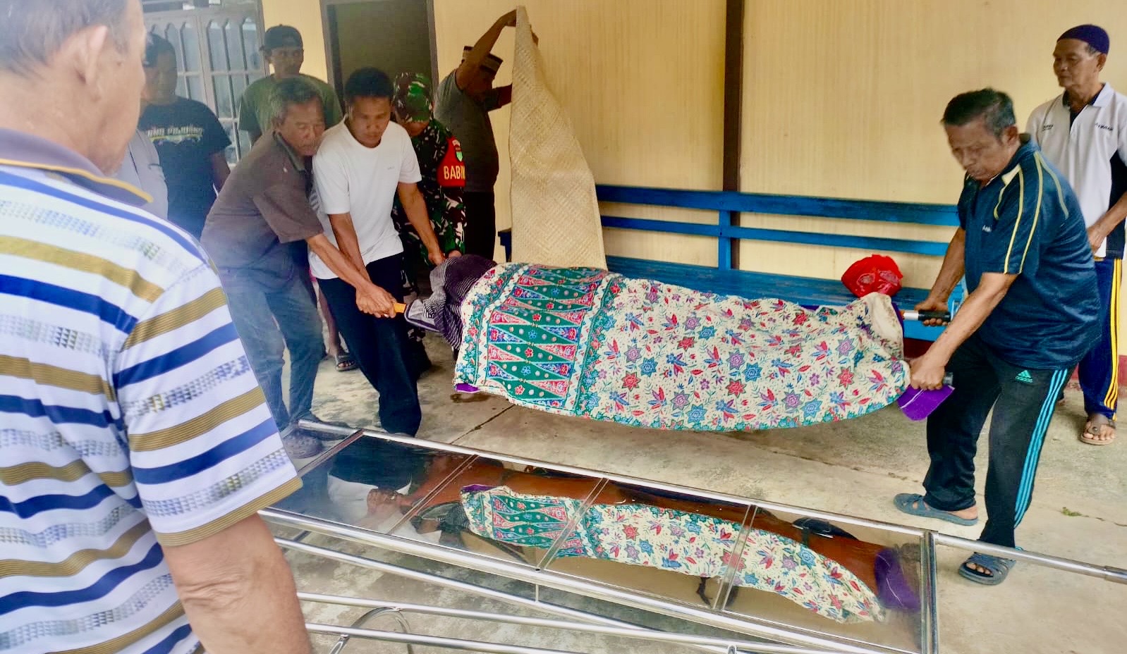 “Saya memanggil-manggil dari jendela pos, tapi tak ada jawaban. Setelah saya ke samping pos, saya melihat korban sudah tergeletak di tanah,” ujar Sekecik.