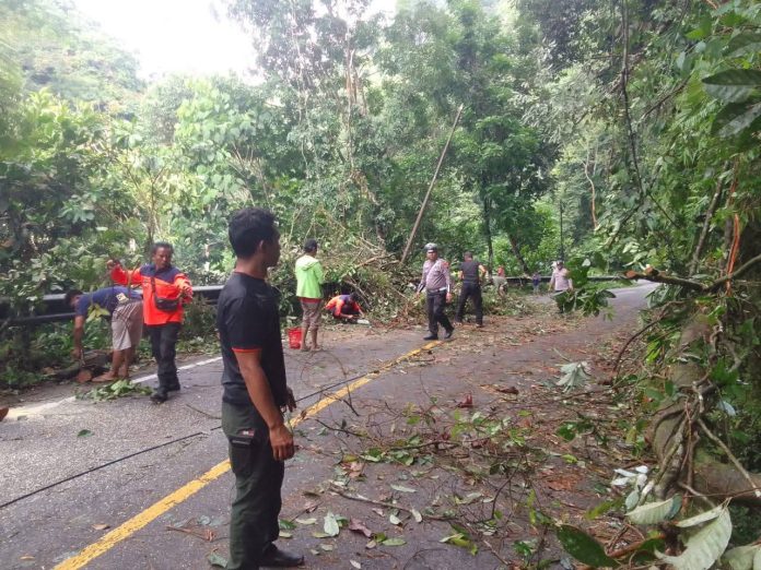 Dijelaskannya bahwa kondisi saat ini belum bisa dilewati kendaraan, masih tahap pembersihan pohon yang tumbang.