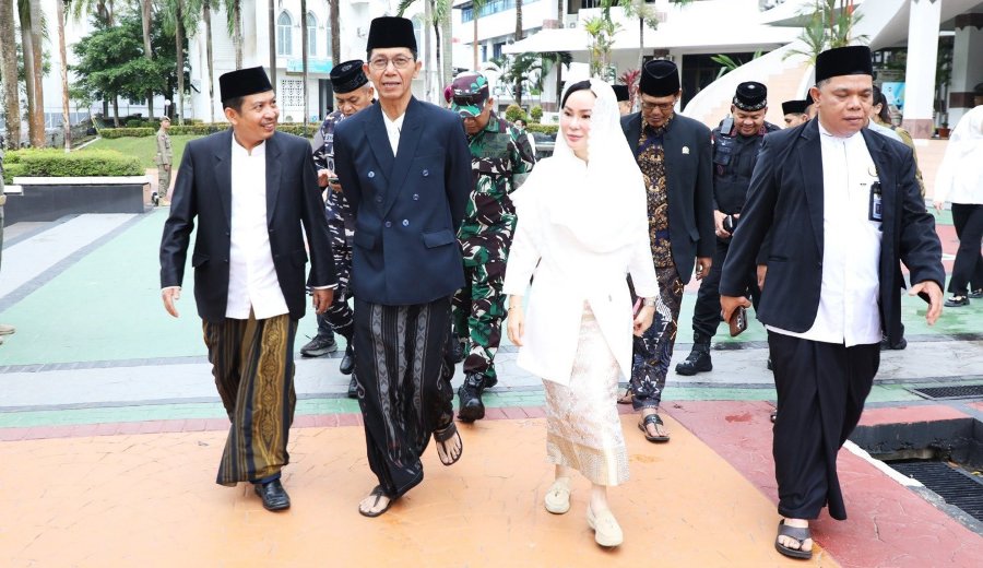 WARTAKEPRI.co.id, BATAM – Suasana religius mewarnai peringatan Hari Santri Tingkat Kota Batam Tahun 2025 di Dataran Engku Putri, Rabu (22/10/2025). Wali Kota Batam, Amsakar Achmad, tampil mengenakan sarung, jas hitam dan peci, sementara Wakil Wali Kota Batam, Li Claudia Chandra, tampil anggun dalam balutan busana serba putih dengan kerudung.