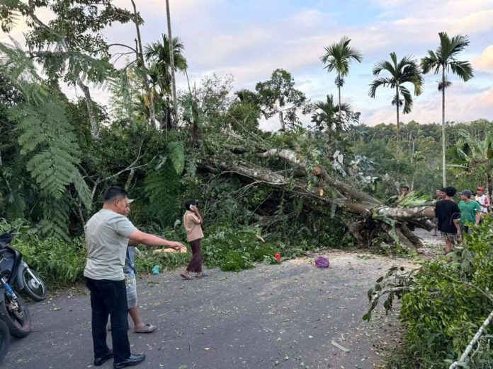 Diketahui juga bahwa hingga hari ini ada dua kejadian batang kayu tumbang yang melintang di jalan tersebut,”pungkasnya.