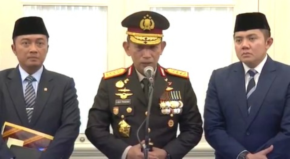 Hal itu disampaikan Kapolri dalam keterangan pers di Istana Kepresidenan, Jumat (7/11/2025), didampingi Menteri Sekretaris Negara (Mensesneg) Prasetyo Hadi dan Sekretaris Kabinet (Seskab) Letkol Teddy Indra Wijaya.