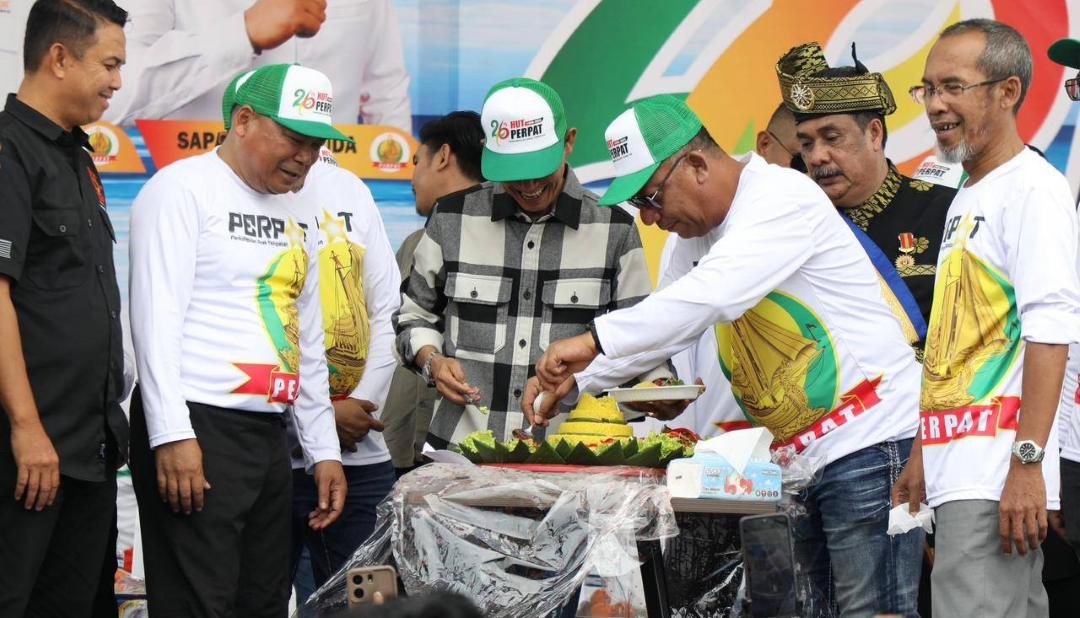 Amsakar Achmad, ikut potong tumpeng di Hari Ulang Tahun ke-26 Persatuan Pemuda Tempatan ( PERPAT ) di Bengkong Sadai, Sabtu (22/11/2025).