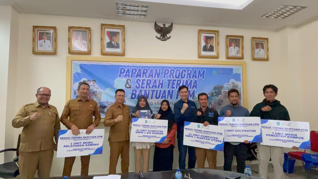 “Kita menyerahkan bantuan kepada pemerintah berupa 1 unit mobil jenazah, 1 unit mobil sampah, 2 unit kultivaror, 3 unit mesin pencecah kompos, 21 unit komputer untuk SMPN 1 Air Nangak, dan 21 Unit Komputer untuk SMPN 1 Siantan Utara, itu semua diberikan guna mendukung program pemerintah daerah demi kesejahteraan masyarakat,” ucapnya.
