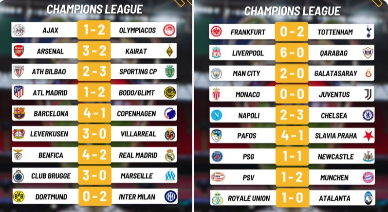 Paris Saint-Germain dan Newcastle United, yang kebetulan berhadapan langsung di Matchday 8, sama-sama tergusur dari delapan besar. Keduanya bermain imbang 1-1 sehingga saling menyeret satu sama lain ke babak play-off.