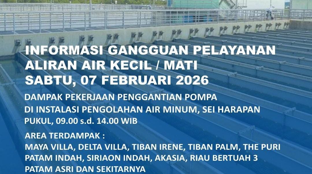 Air Batam Hilir menginformasikan, pelaksanaan pekerjaan terencana Penggantian Pompa di Instalasi Pengolahan Air Minum Sei Harapan dan akan dilakukan pada :