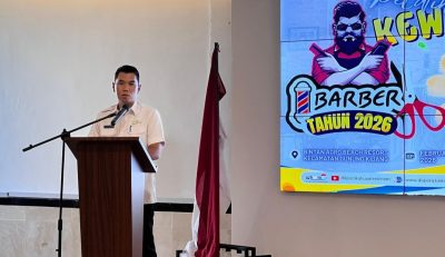 “Kami ingin bisa membuka seluas-luasnya akses untuk menciptakan wirausaha muda di Bintan. Hari ini salah satunya terkait barber, skill dilatih, usaha ditingkatkan, termasuk juga cara mengembangkan sektor usahanya” kata Roby usai membuka kegiatan Pelatihan Kewirausahaan Barber sekaligus menyerahkan peralatan barber shop, Rabu (11/02/2026) di Hotel Agro Beach Resort, Teluk Bakau, Kecamatan Gunung Kijang.