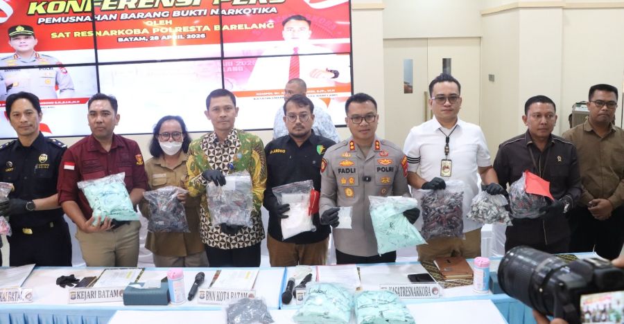 WARTAKEPRI.co.id, BATAM – Komitmen pemberantasan narkotika kembali ditegaskan Polresta Barelang. Melalui Satuan Reserse Narkoba (Satresnarkoba), jajaran kepolisian menggelar konferensi pers sekaligus pemusnahan barang bukti hasil pengungkapan kasus periode Februari hingga April 2026, di Lobby Mapolresta Barelang, Selasa (28/4/2026).